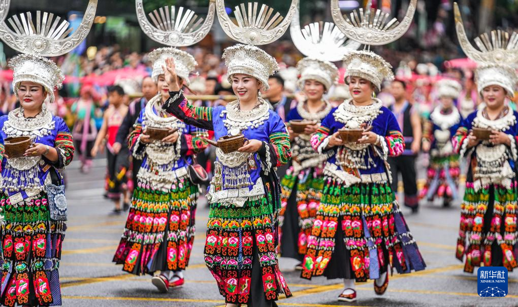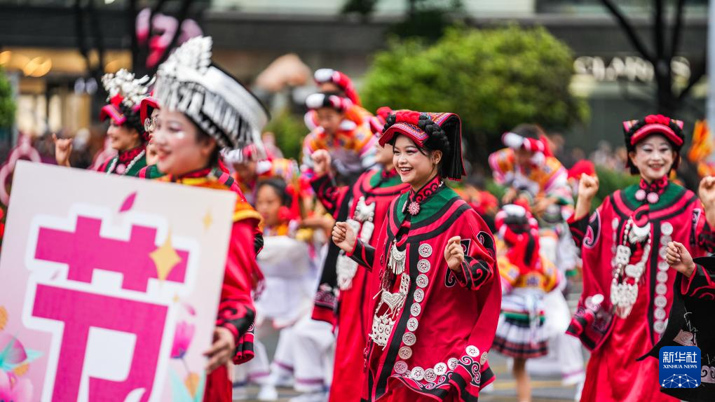 当日,“爽爽贵阳,‘娱’你相约”民族巡游大联欢在贵阳市举行。来自贵州省9个市(州)的3200余人组成29个方阵,配合3个主题装置进行巡游,集中展示了贵州的历史文化、民族文化、时代风尚和旅游特色。
