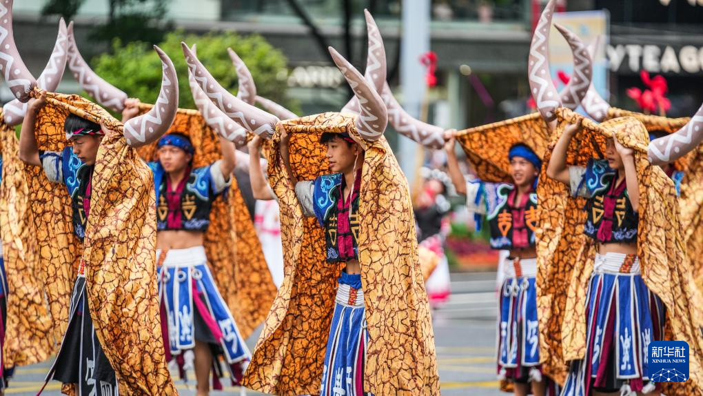 5月18日,贵阳市乌当区方阵的表演队伍在进行巡游。