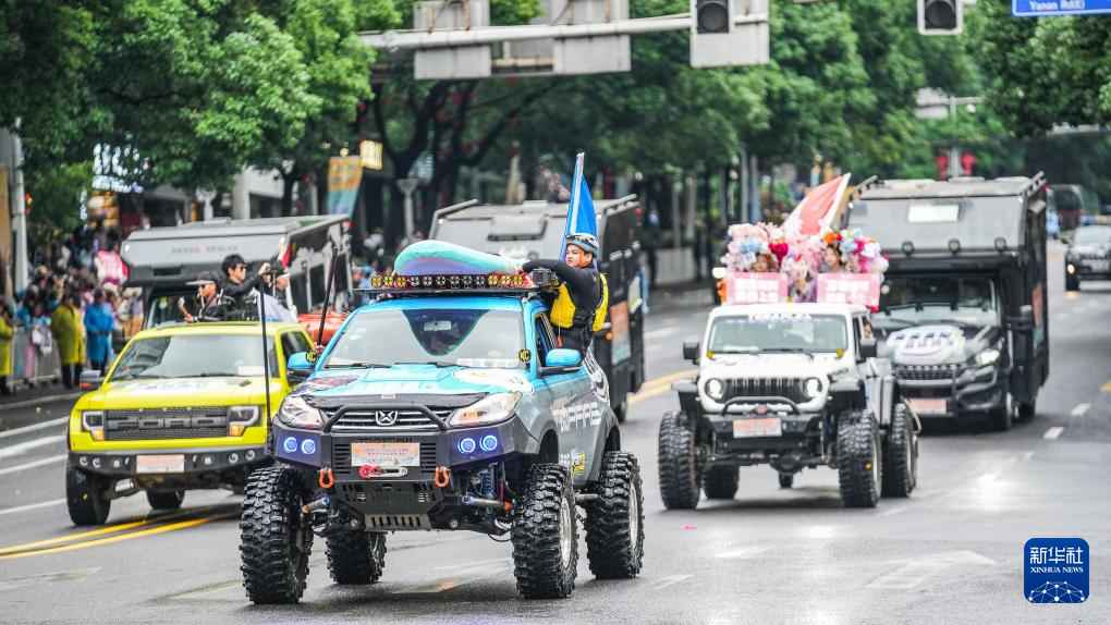 5月18日,旅游新玩法方阵的表演队伍在进行巡游。