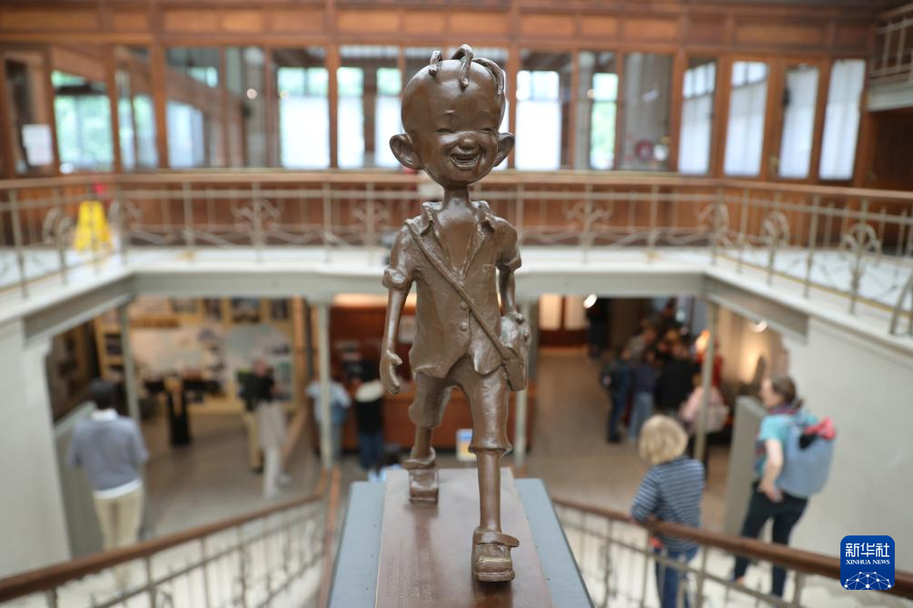 这是5月18日在比利时布鲁塞尔的漫画博物馆拍摄的三毛像。