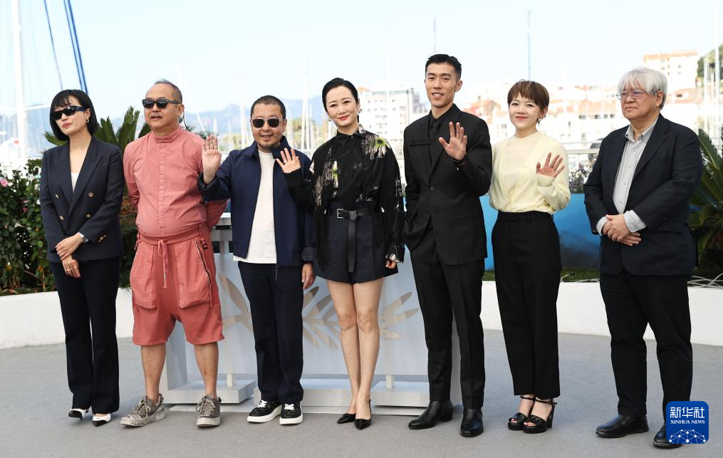 5月19日,在法国戛纳举行的第77届戛纳国际电影节上,导演贾樟柯(左三)携主创亮相影片《风流一代》拍照式。