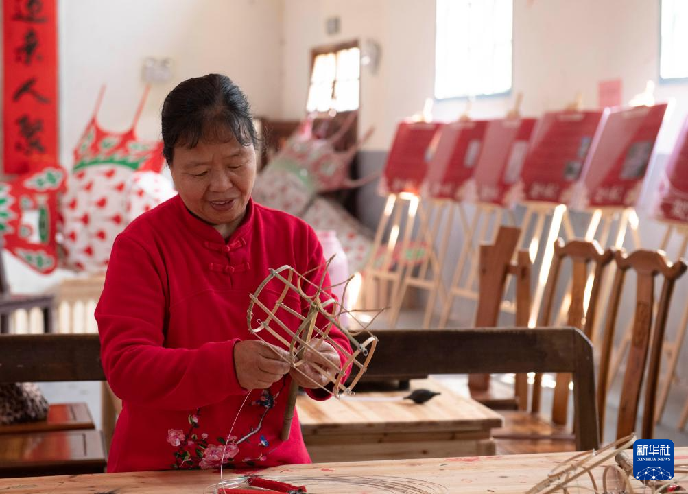 汪满田鱼灯县级非遗传承人汪胜娟在溪头镇汪满田村鱼灯工坊制作鱼灯(5月10日摄)。