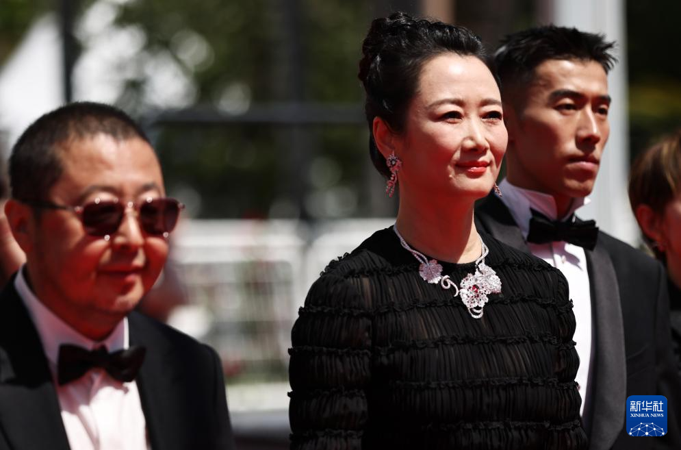 5月18日,在法国南部小城戛纳举行的第77届戛纳国际电影节上,影片《风流一代》的主演赵涛(中)出席首映礼。