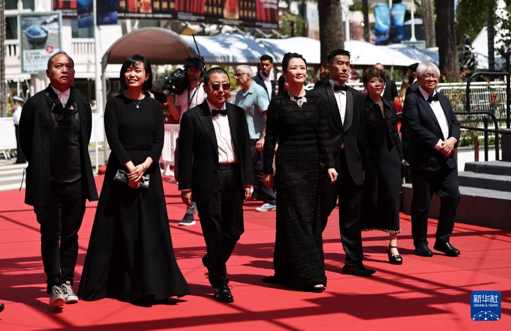 5月18日,在法国南部小城戛纳举行的第77届戛纳国际电影节上,影片《风流一代》导演贾樟柯(左二)携主创出席首映礼。