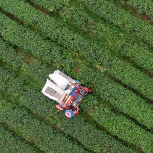近日,湖北省孝感市大悟县金墩村抹茶基地进入采茶收尾阶段,村民忙着采摘、加工茶叶,供应市场。