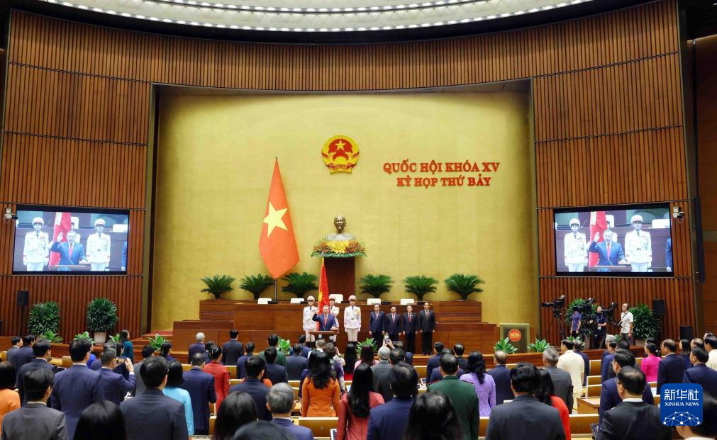 这是5月22日在越南首都河内拍摄的苏林就任越南国家主席的宣誓仪式现场。