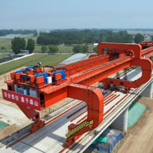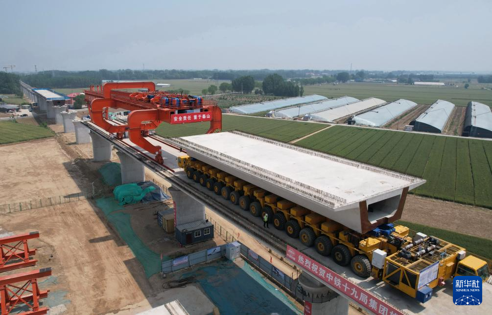 5月23日,中铁十九局的工人在雄商高铁河北段肃宁东站前三标段进行架梁作业。