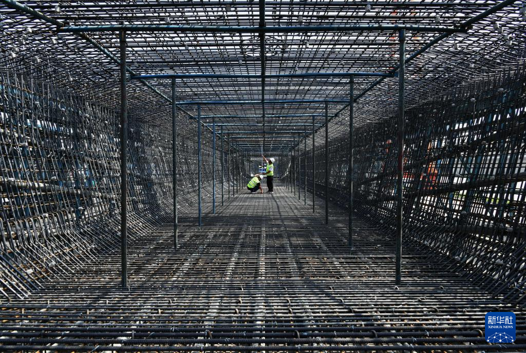5月23日,中铁十九局的工人在雄商高铁河北段肃宁东站前三标段预制梁厂检查预制梁钢筋骨架质量。