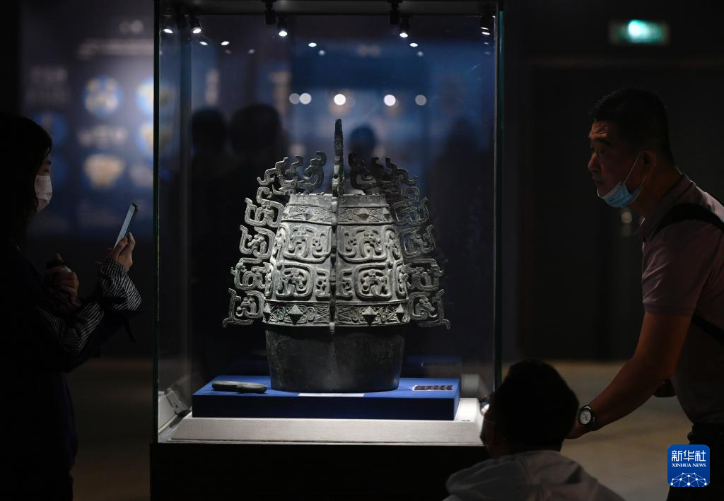 在福建博物院,观众在观赏宝鸡青铜器博物院藏的秦公镈(2022年5月12日)。 新华社记者 魏培全 摄pagebreak