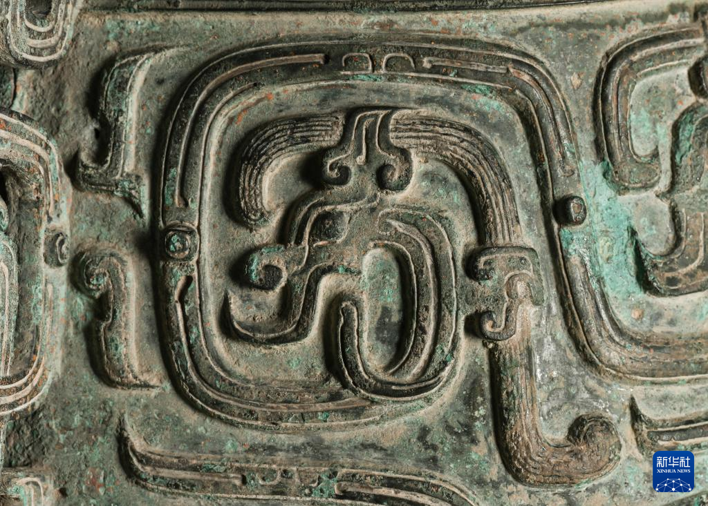 秦公镈(一号镈)“钲”部龙纹局部(2024年1月23日摄)。 新华社记者 邹竞一 摄pagebreak