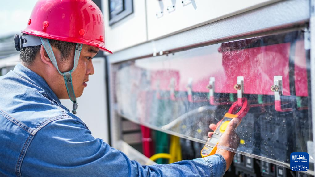 在盘江百万千瓦级光伏基地,贵州能源集团的工人在检查变电器(5月23日摄)。