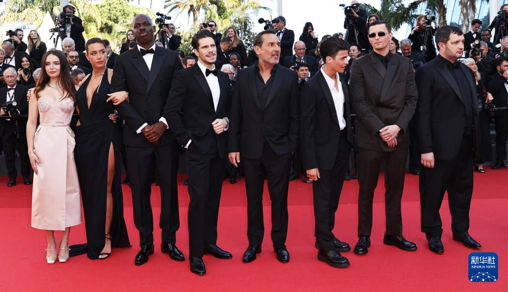 5月23日,在法国南部小城戛纳举行的第77届戛纳国际电影节上,主竞赛单元影片《狂爱》的主创人员踏上首映式红毯。