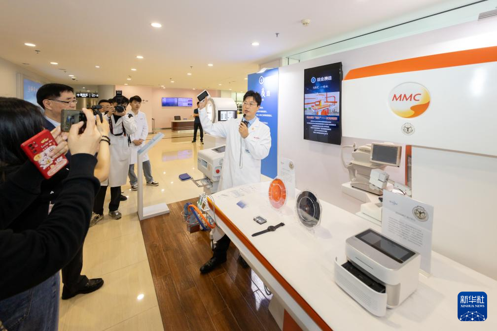 5月24日,在位于上海市嘉定区的上海交通大学医学院附属瑞金医院肿瘤质子中心,中国工程院院士、瑞金医院院长宁光在介绍一台自动眼征测量仪。