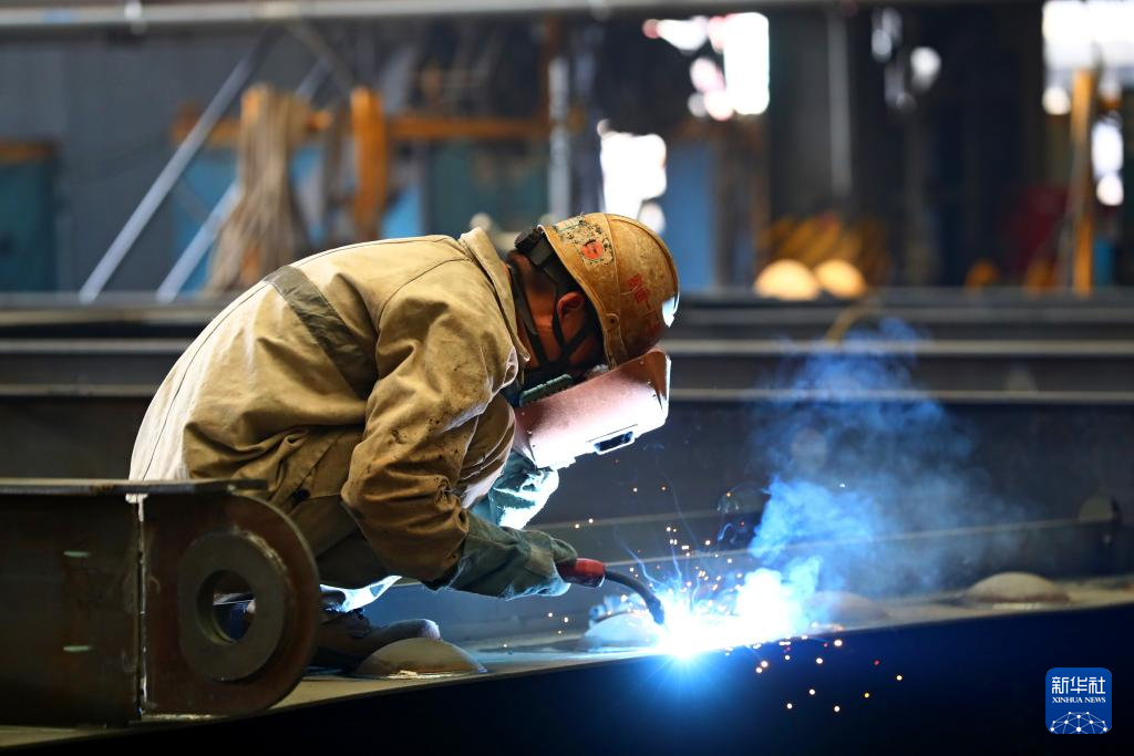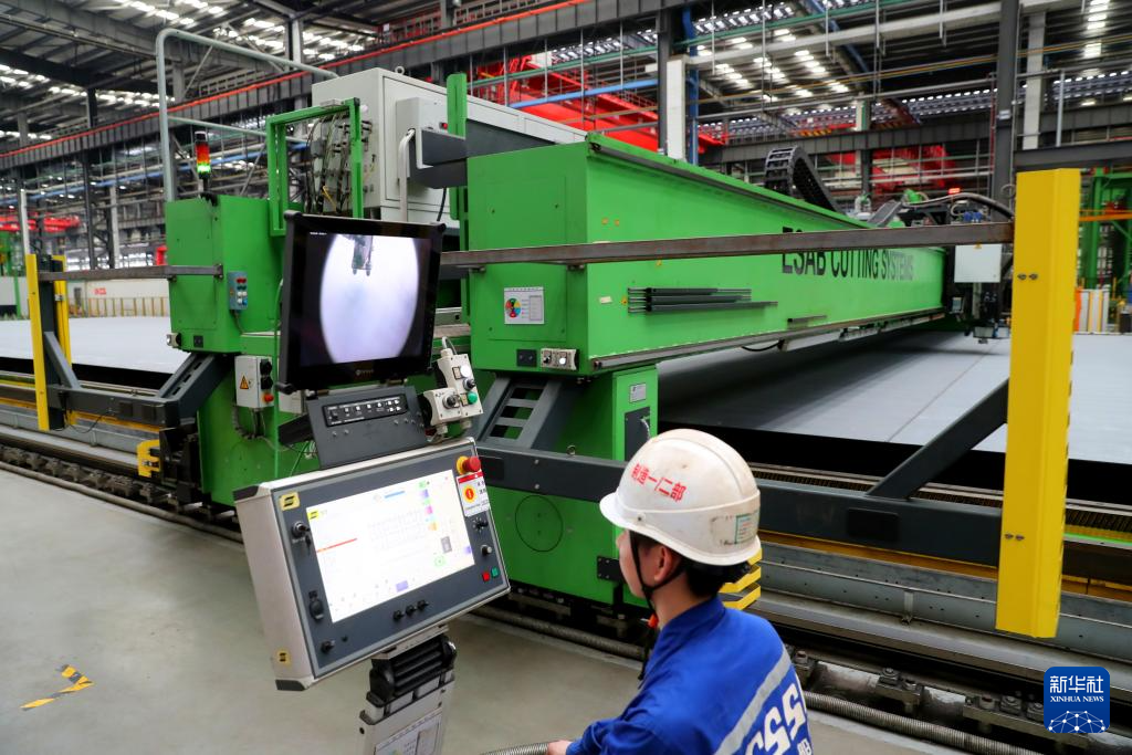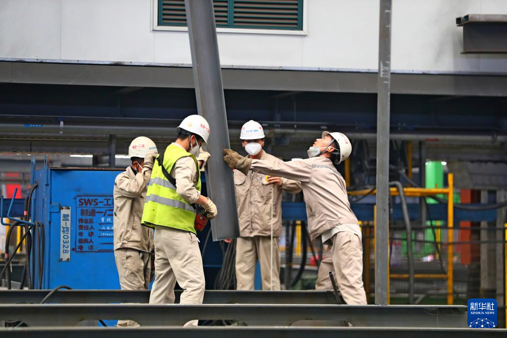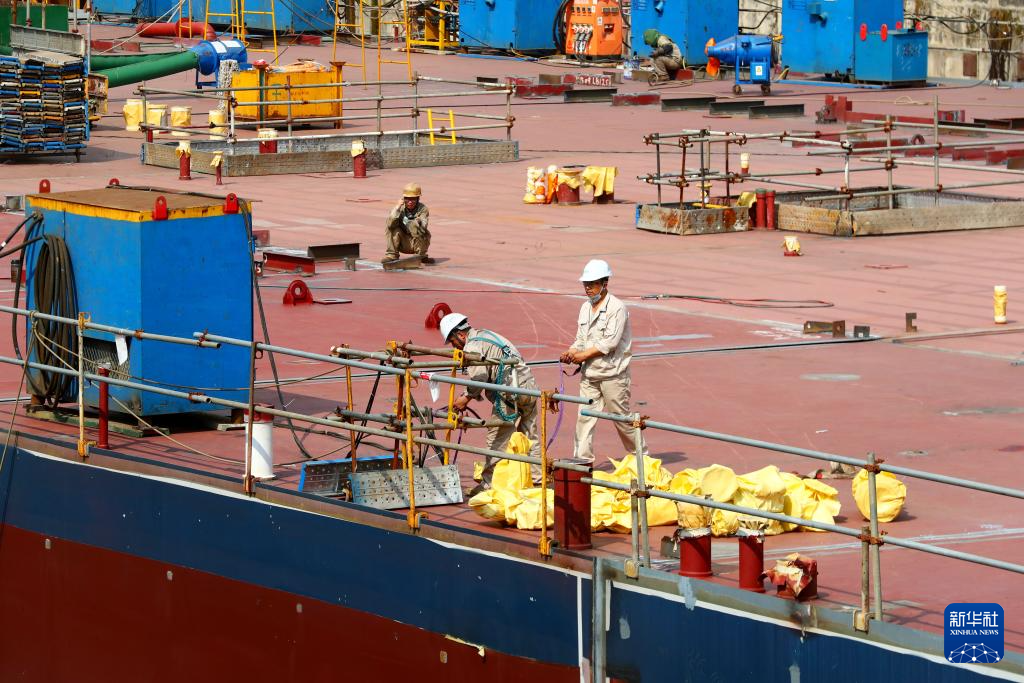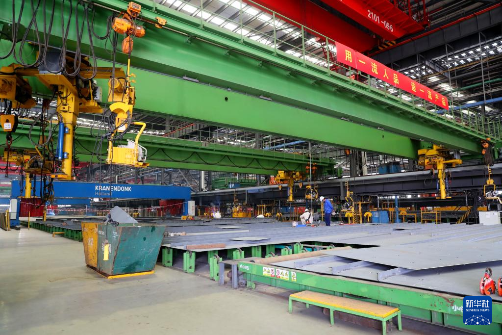 5月26日,工人在上海浦东新区上海外高桥造船有限公司内忙碌。