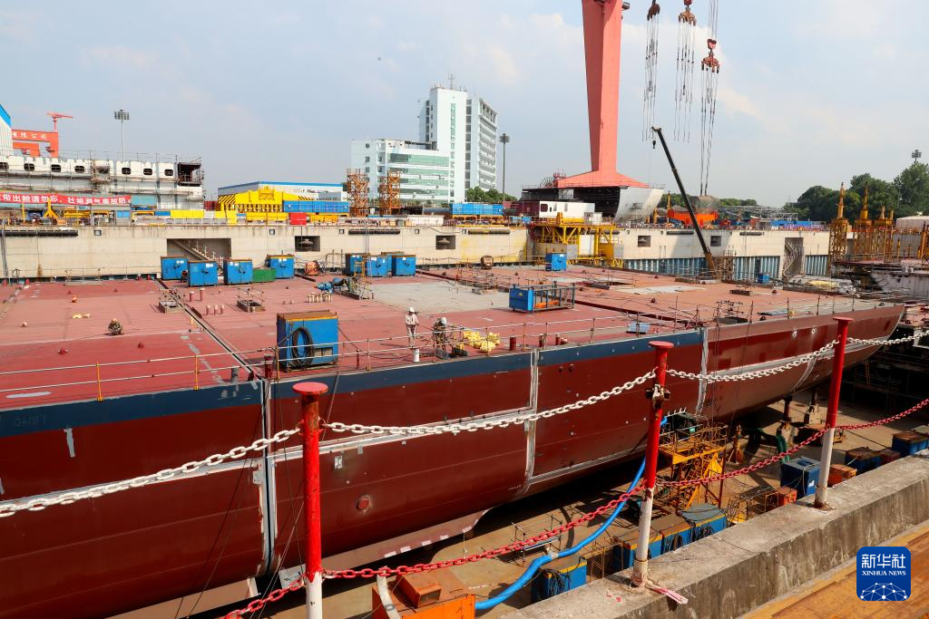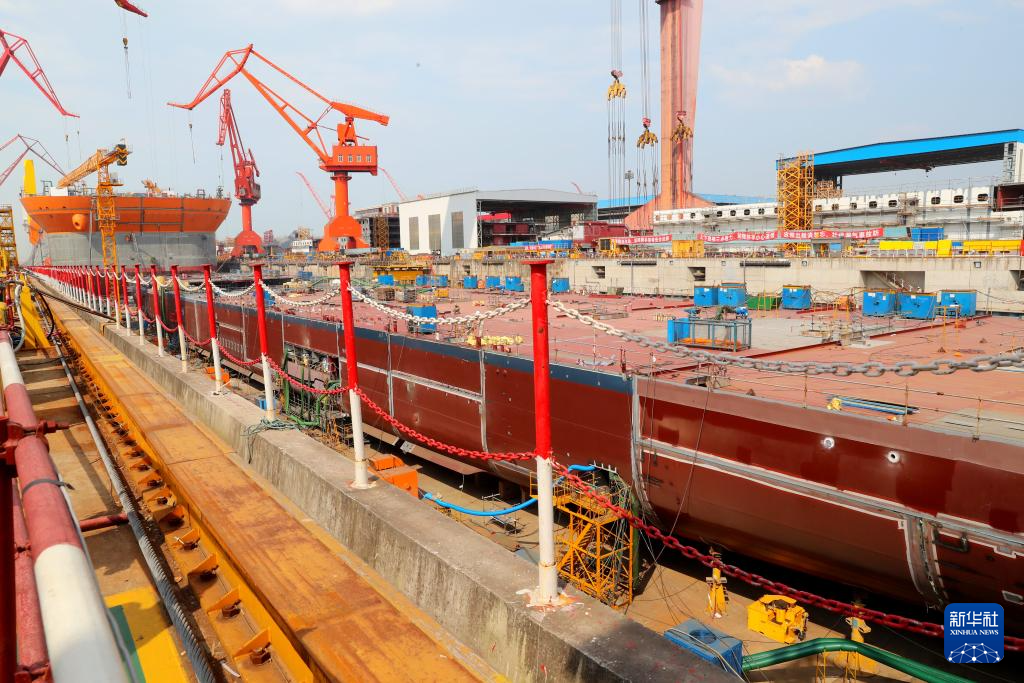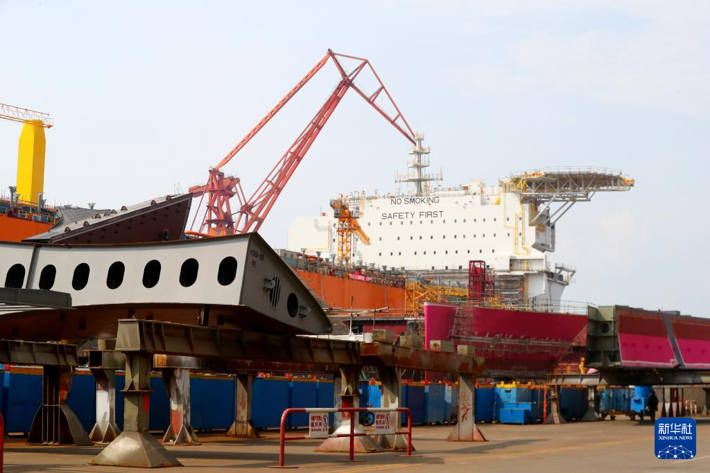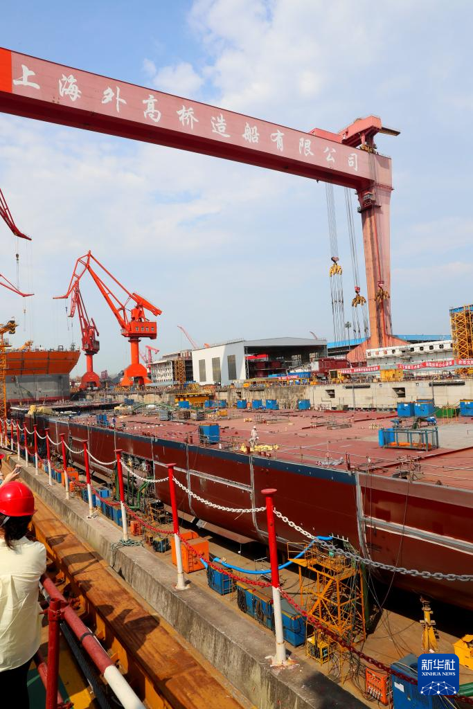 这是5月26日在上海浦东新区拍摄的上海外高桥造船有限公司生产工地内景。