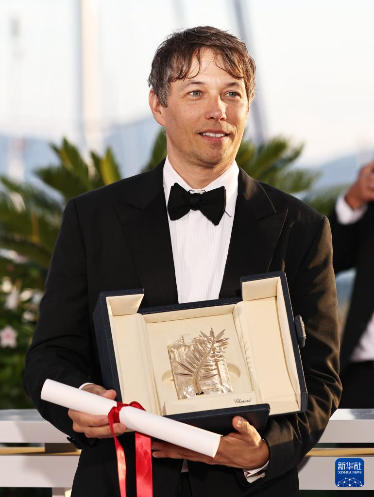 5月25日,在法国南部城市戛纳举行的第77届戛纳电影节上,美国导演肖恩·贝克与“金棕榈奖”奖杯合影留念。