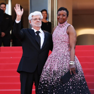 5月25日,在法国南部城市戛纳举行的第77届戛纳电影节上,美国导演、编剧、制片人乔治·卢卡斯(左)抵达闭幕式红毯。