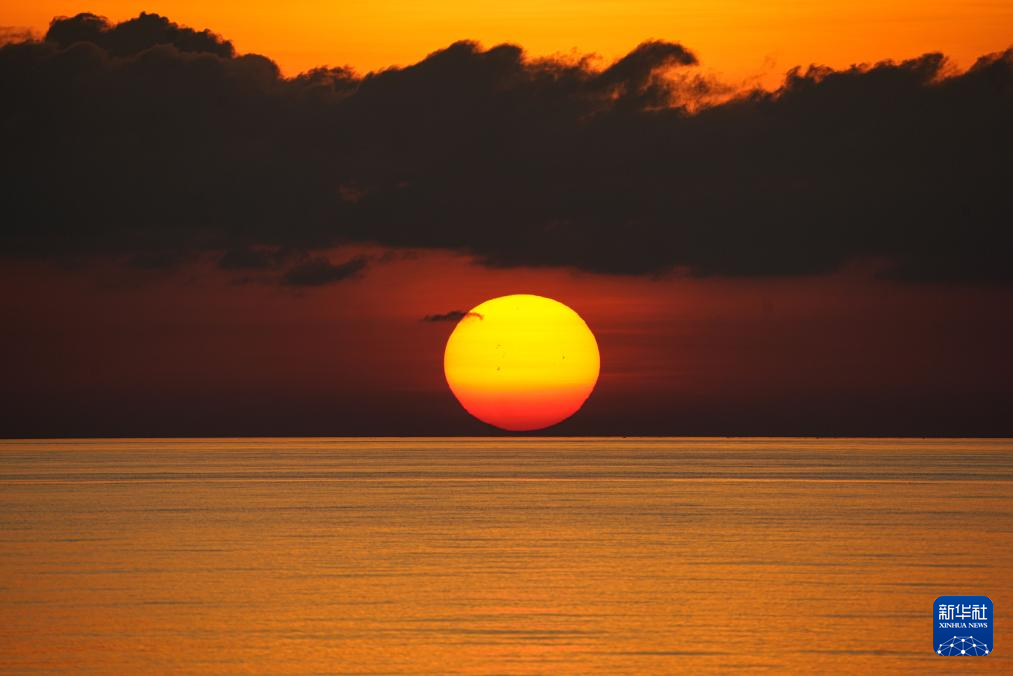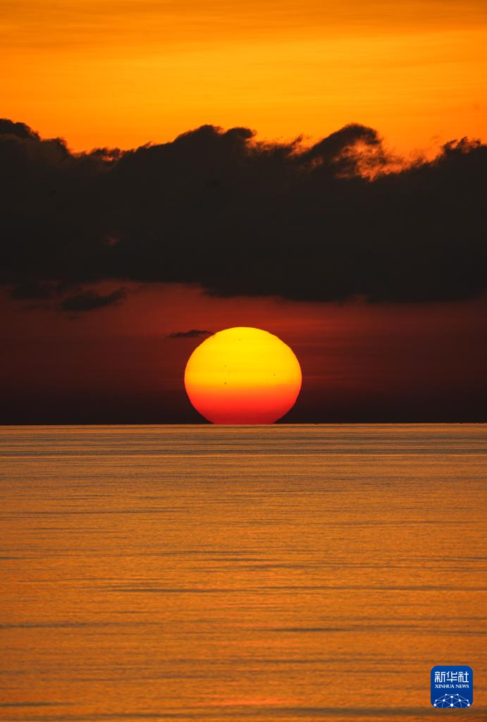 在南海拍摄的落日景色(2023年3月24日摄)。
