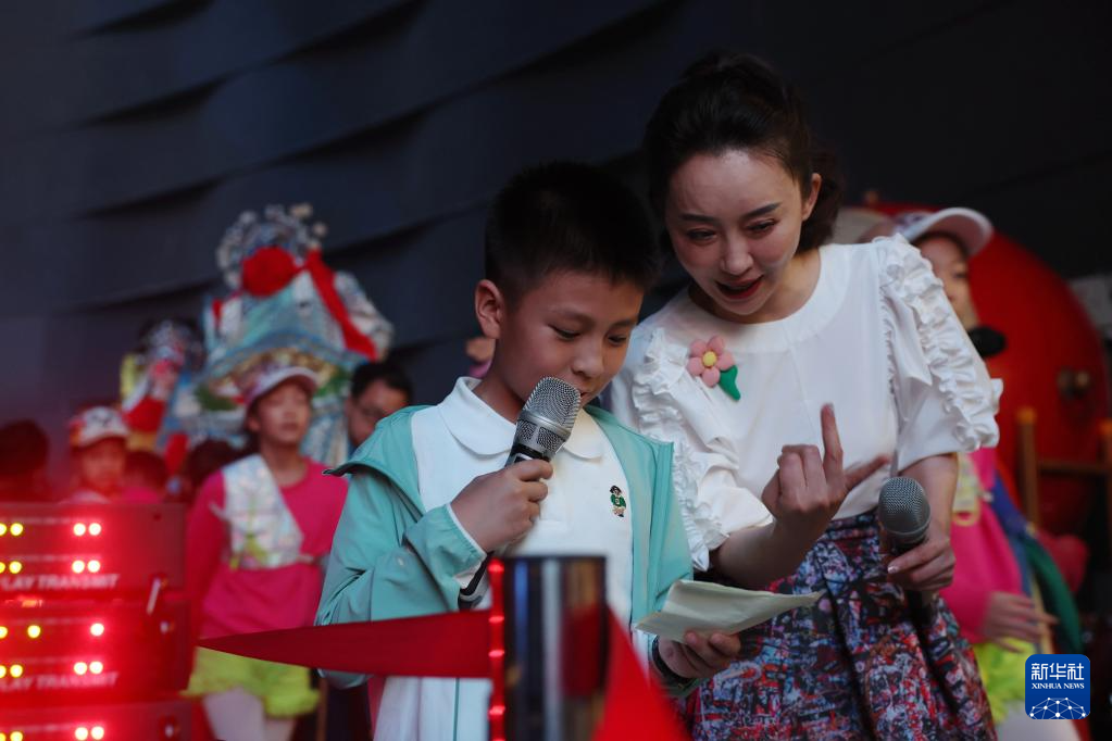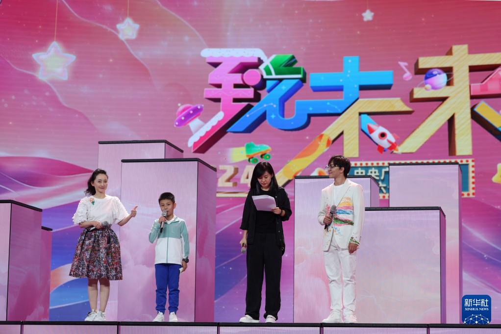 张书铖(左二)在中央广播电视总台“六一”晚会节目录制现场彩排(5月23日摄)。