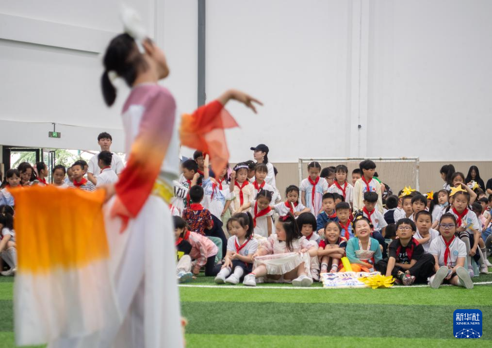 5月31日,在湖北省武汉市万松园路小学,孩子们在演出。