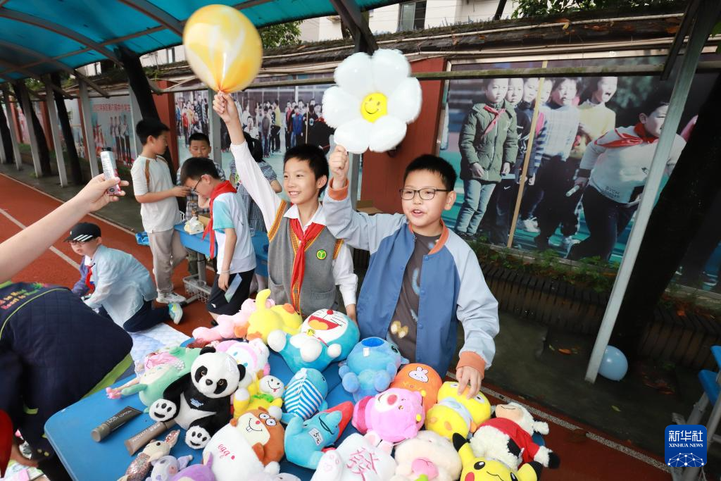5月31日,位于武汉市洪山区的华中师范大学幼儿园组织亲子游园会、爱心义卖、画展等活动。这是小朋友们在活动现场。