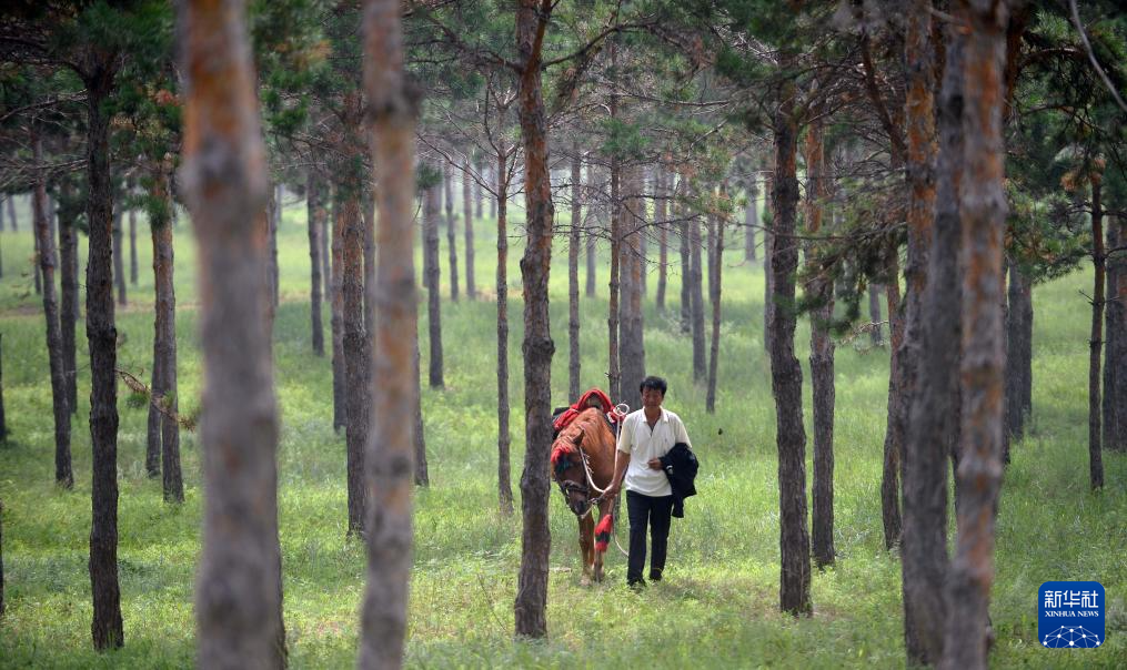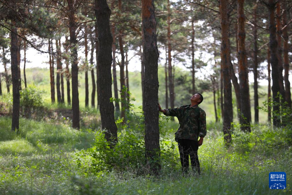 5月31日,李东魁查看松树生长情况。新华社记者 杨青摄pagebreak