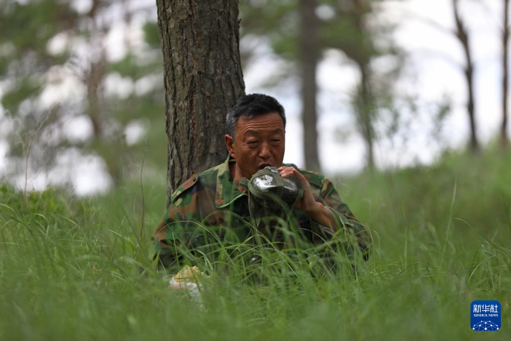 5月31日,李东魁在树下喝水。新华社记者 杨青摄pagebreak