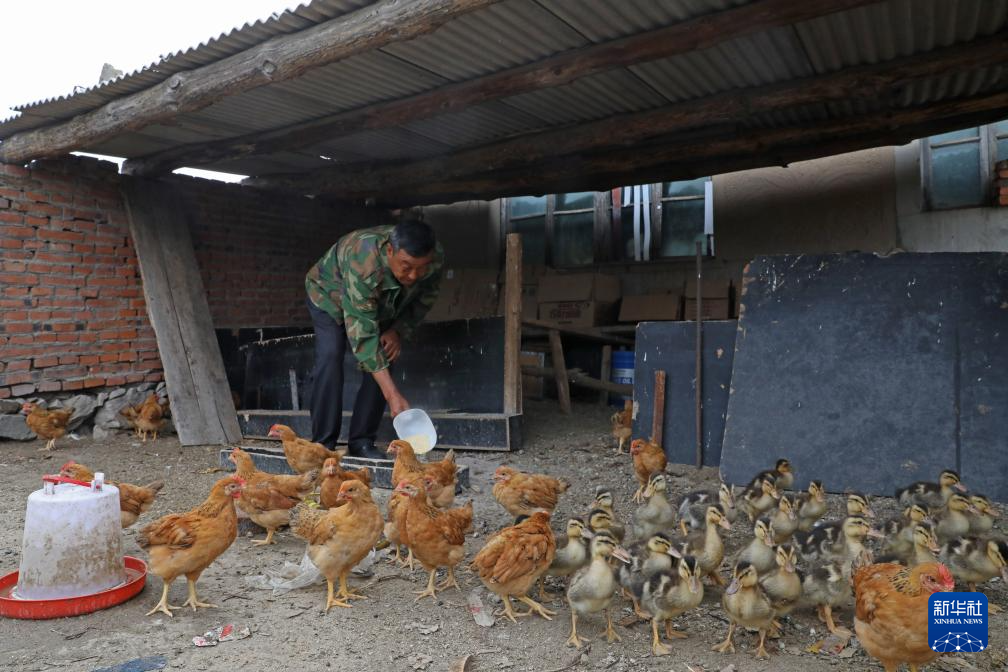 5月30日,李东魁在家中喂鸡。新华社记者 杨青摄pagebreak