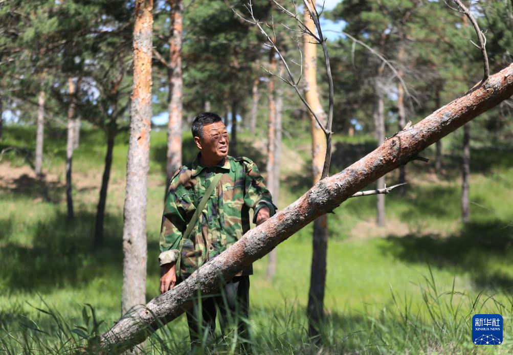5月31日,李东魁查看一棵倒伏的松树。新华社记者 杨青摄pagebreak