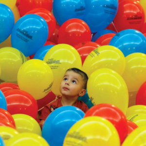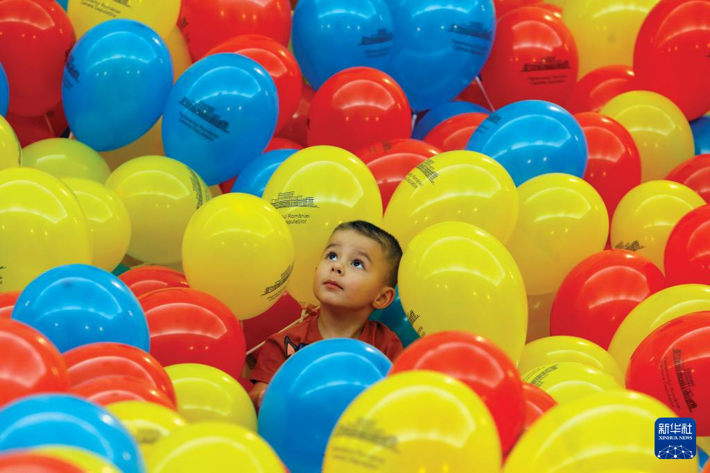 6月1日,在罗马尼亚布加勒斯特,一名男孩在议会大厦儿童节开放日的活动上玩气球。