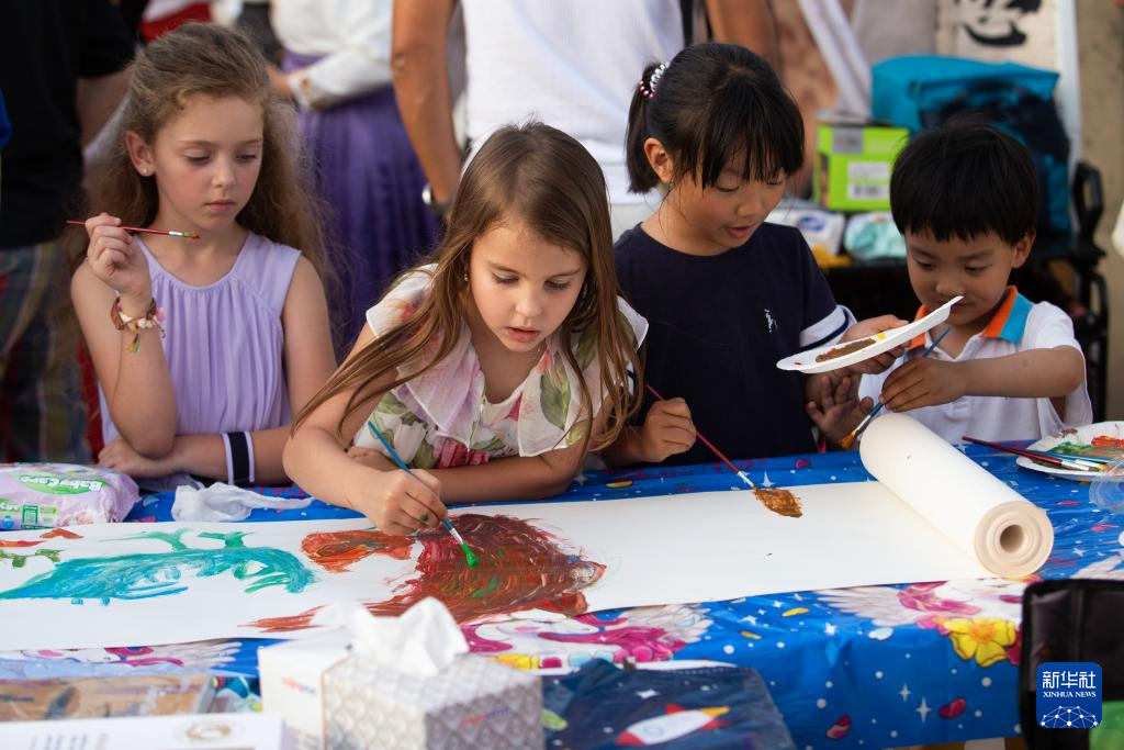 6月1日,在塞浦路斯利马索尔,小朋友在中国驻塞浦路斯大使馆举办的文化互鉴活动上画画。