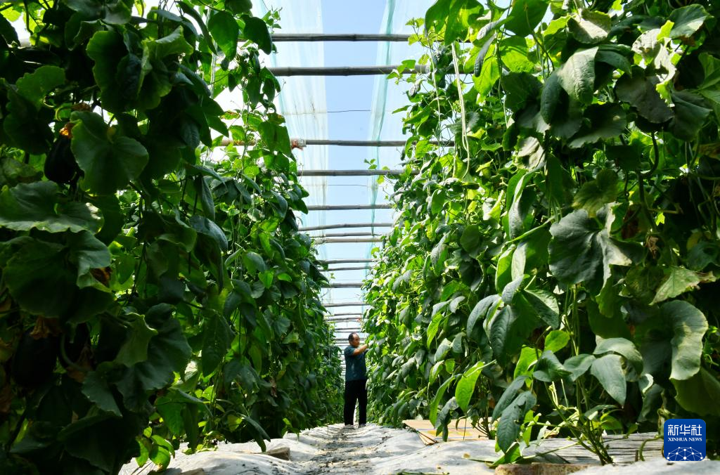 6月3日,农民在河北省盐山县盐山镇一处果蔬种植棚内劳作。