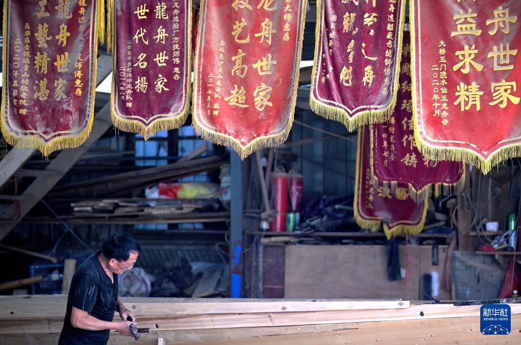 端午节临近,在福建省福州市闽侯县南通镇方庄村里,各家龙舟加工厂正忙着赶制端午节的龙舟订单。