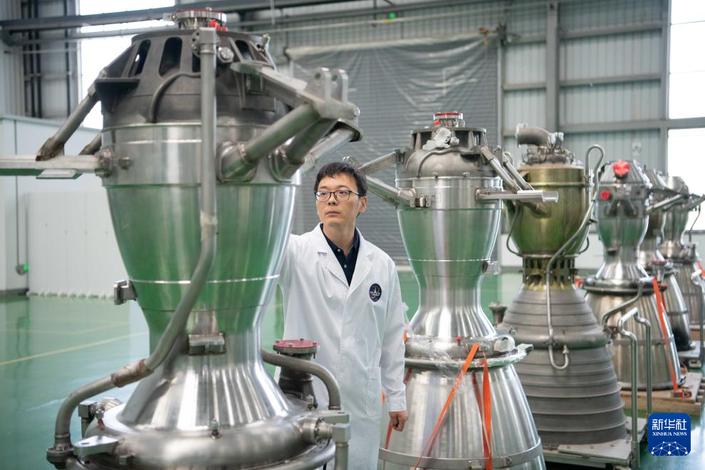 6月3日,在位于安徽池州的安徽星河动力装备科技有限公司内,邢柏强在检查推力室试车后,其状态是否完好。今年39岁的邢柏强是安徽星河动力装备科技有限公司动力制造部部长,主要负责该公司液体火箭发动机的具体研制、固体火箭的末级装配等工作。他曾7次参与谷神星一号火箭发射,牵头完成谷神星一号火箭轨姿控动力系统批量生产,参与智神星一号液体运载火箭发动机的研制工作。