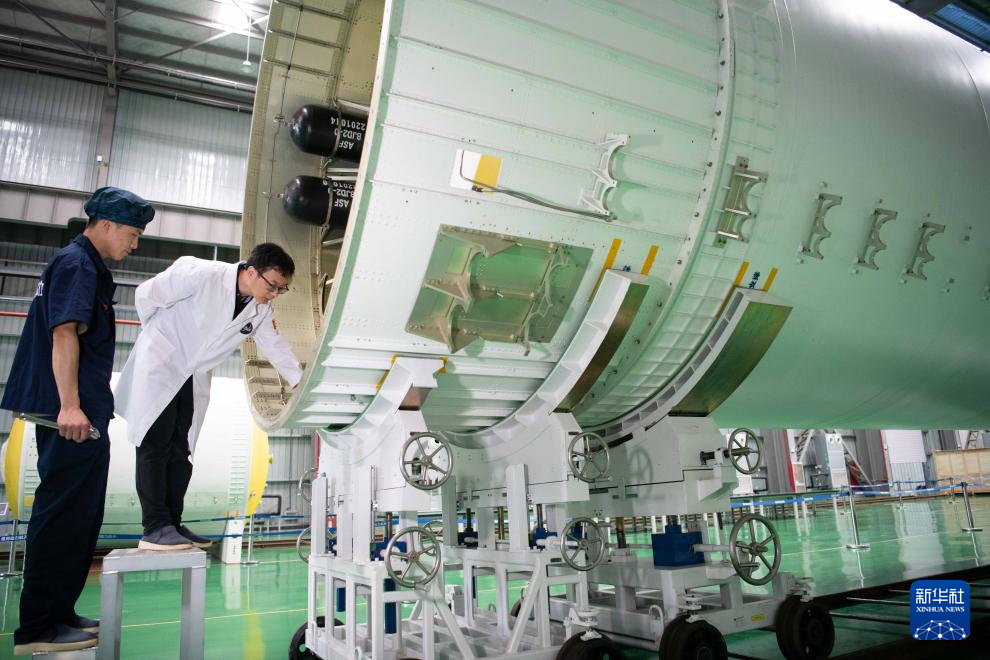 6月3日,航天科工火箭技术有限公司快舟火箭结构设计师刘家欣(左)与装配人员确认火箭舱段产品装配情况。今年29岁的刘家欣是航天科工火箭技术有限公司结构与地面设备研究室主任助理、主管设计师,参加过5次快舟火箭履约任务和多项型号设计优化工作,其牵头设计完成的快舟火箭新型复合材料星箭适配器已在多次快舟一号甲火箭发射履约任务中成功应用。