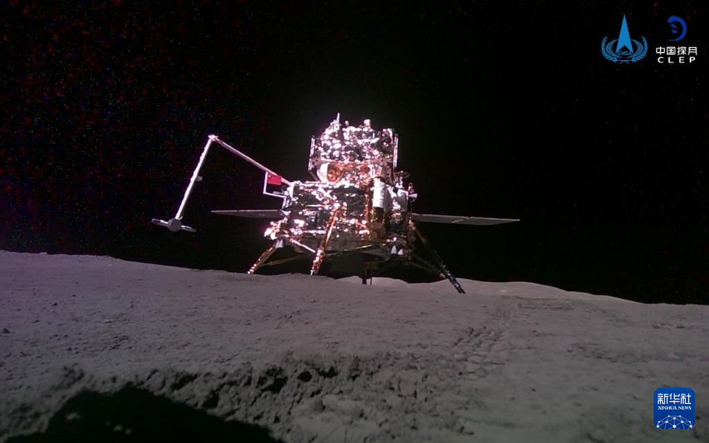 6月3日,嫦娥六号携带的“移动相机”自主移动后拍摄并回传的着陆器和上升器合影。