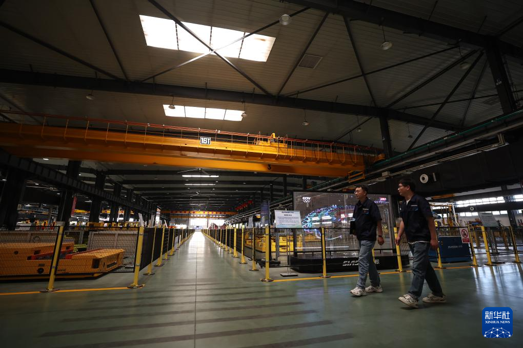 那鹏在车间查看机器人运行情况(6月3日摄)。新华社记者 潘昱龙 摄