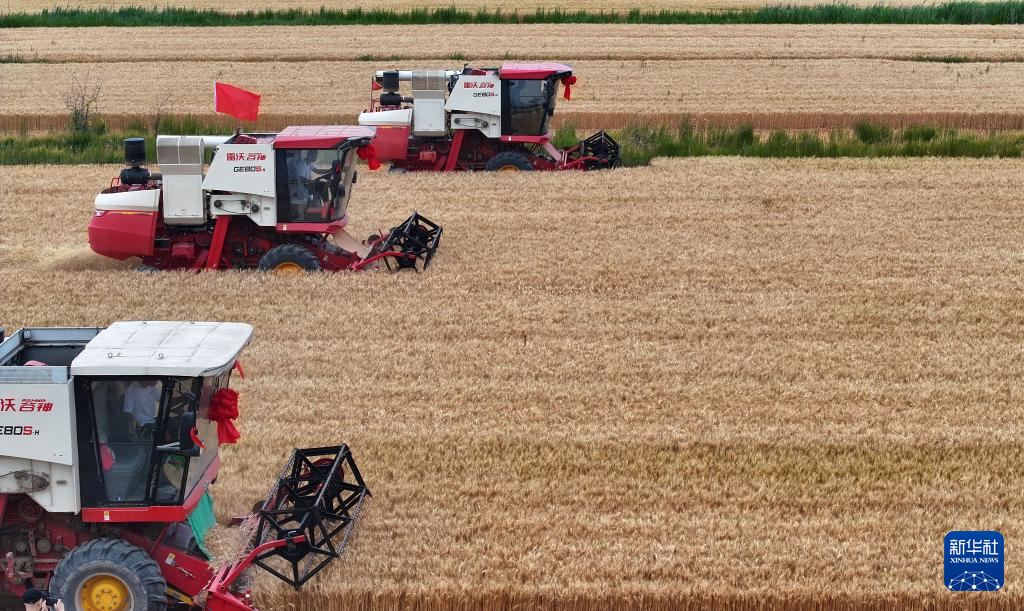 当日,地处天津市南部的静海区中旺镇举行小麦开镰仪式,多台收割机展开机收作业。此次活动也标志着天津大规模小麦机收拉开序幕。