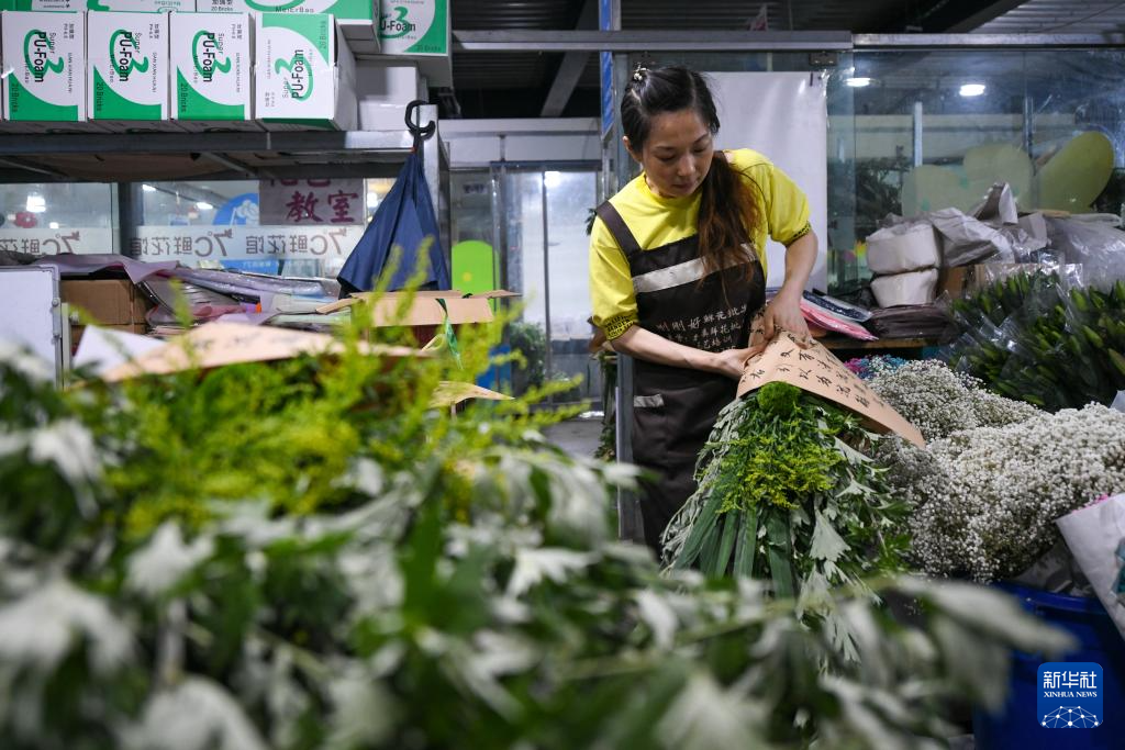 6月6日,在四川省成都市郫都区的一家花店,店主在制作客户订购的艾草花束。