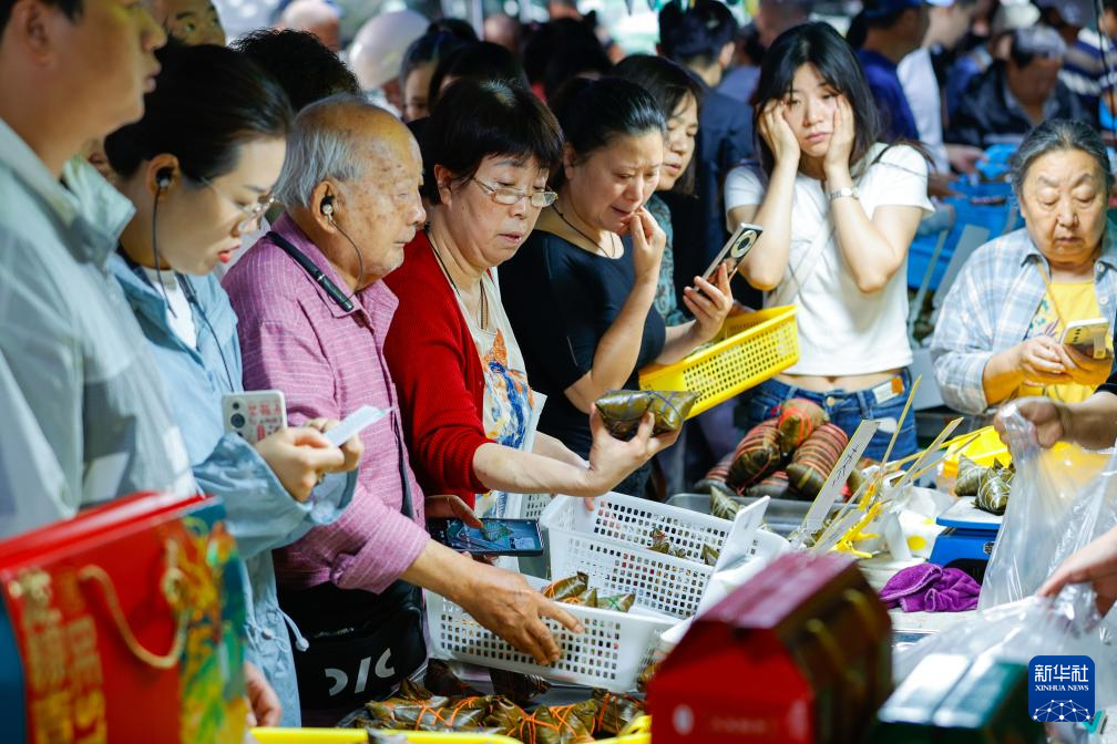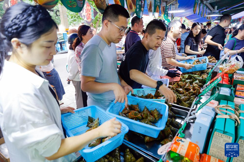 6月7日,在四川省成都市的“粽子一条街”上,人们在选购粽子。