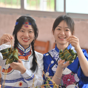 6月7日,在广西柳州市柳江区三都镇举行的“粽叶飘香迎端午,共话民族团结情”主题活动上,人们在展示包好的粽子。