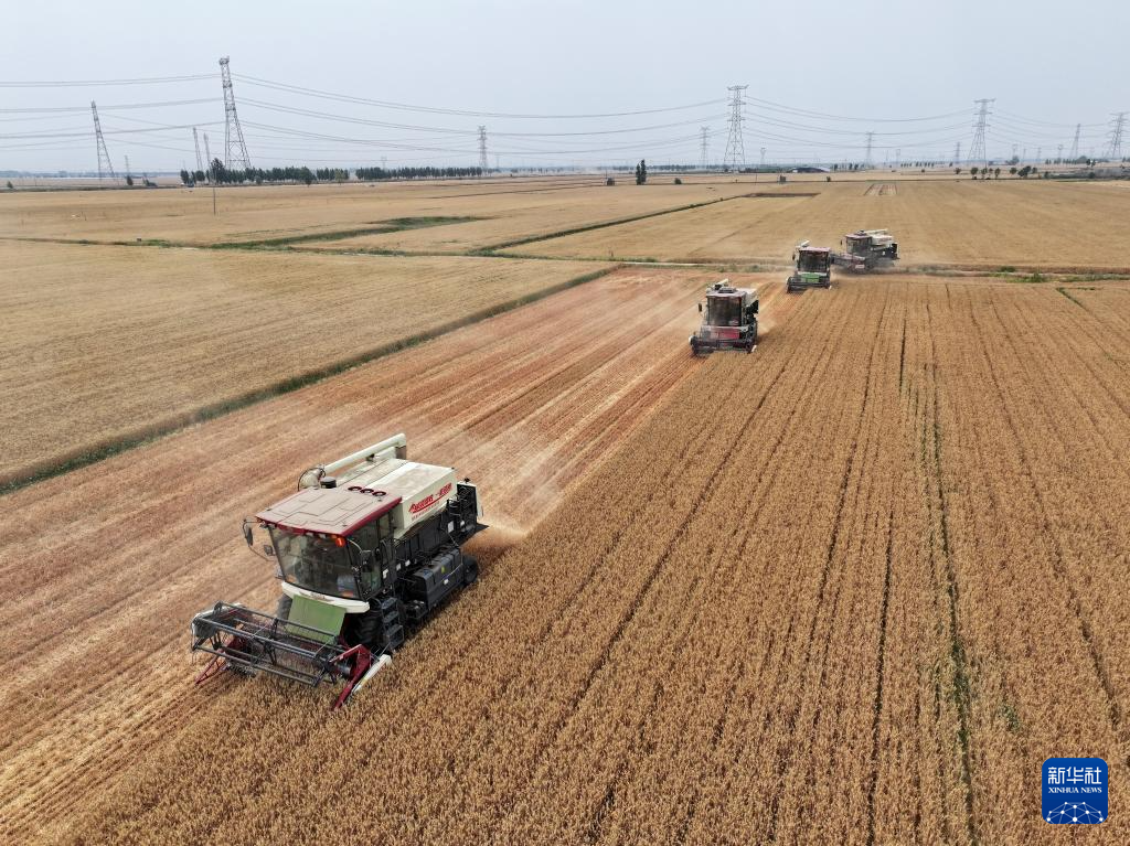 “三夏”时节,华北平原麦浪滚滚,麦收工作陆续开展。河北省邢台市隆尧县农民全力抢收小麦。