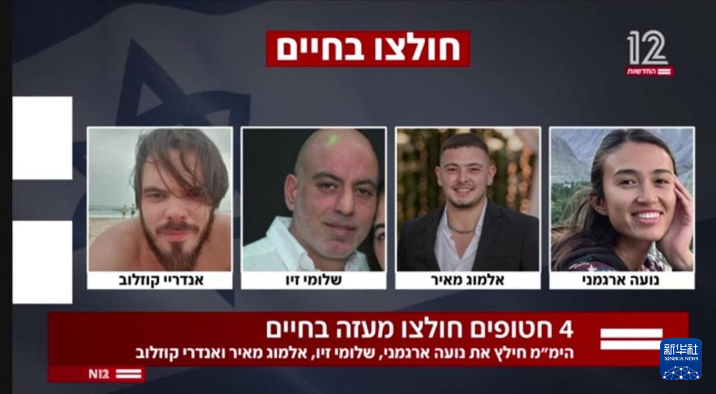 这是以色列媒体6月8日发布的被解救的4名被扣押人员照片。
