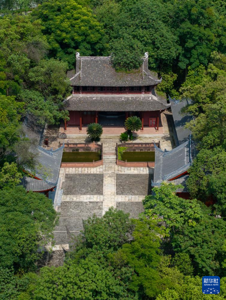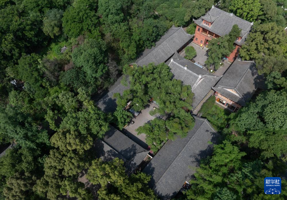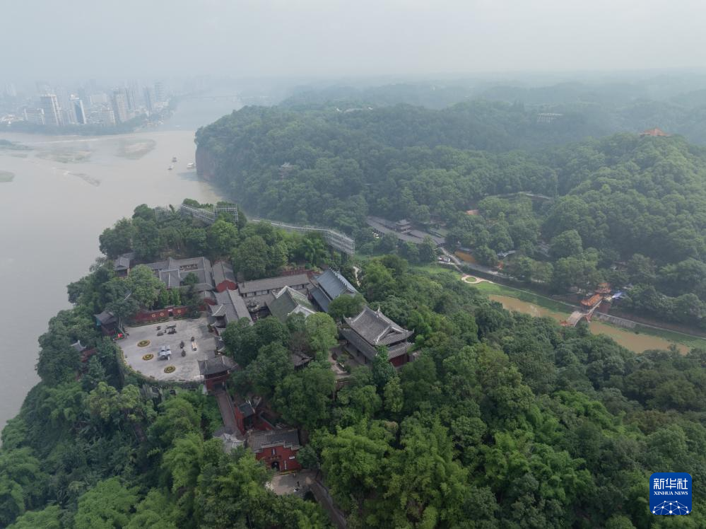 俯瞰乐山大佛景区内的乌尤寺(6月4日摄,无人机照片)。