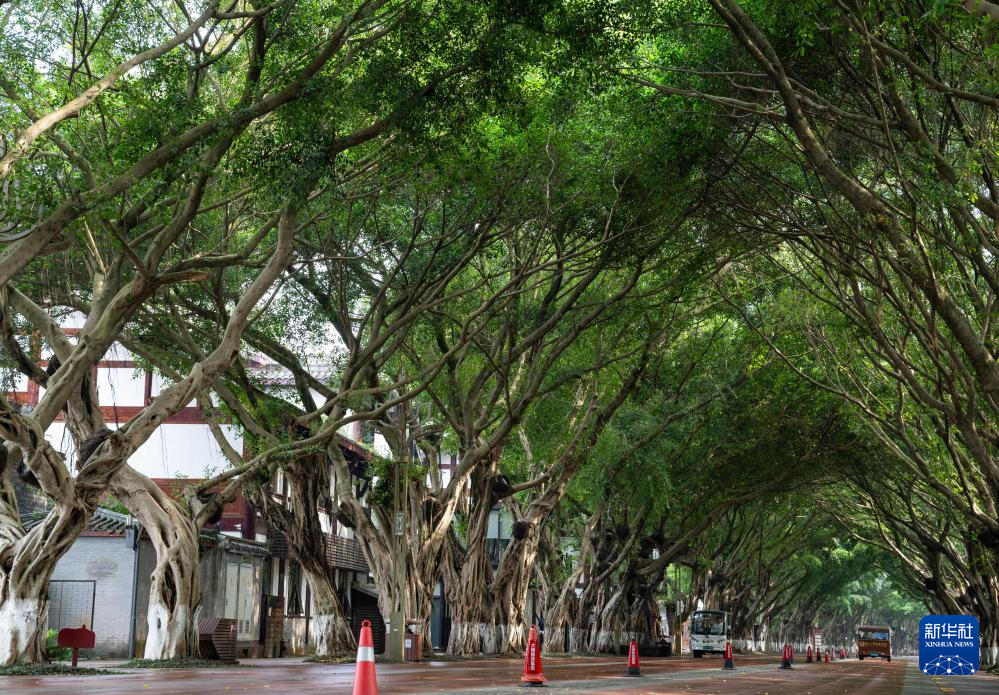 乐山大佛景区凌云路上,茂密的榕树形成绿廊(6月5日摄)。