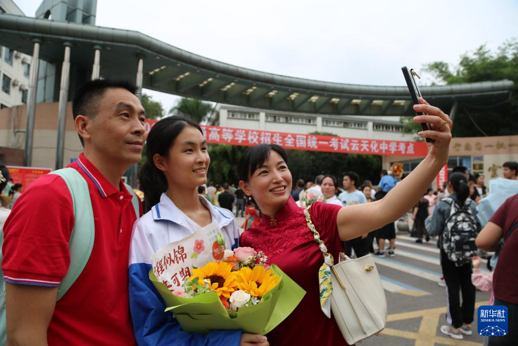 6月8日,在云南省水富市云天化中学考点,家长和考生合影。