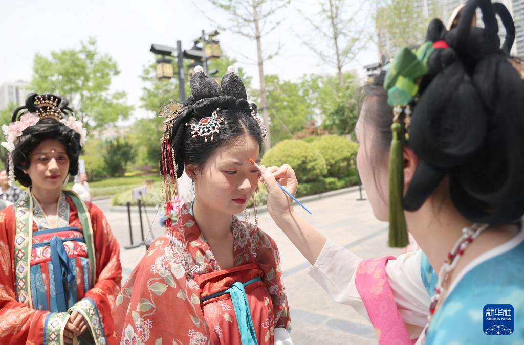 6月8日,在山东省临沂市兵学文化公园,市民在体验点雄黄。