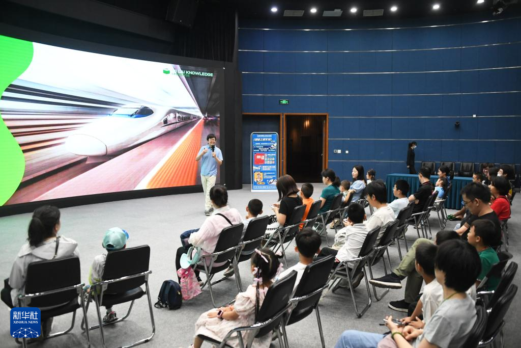 6月8日,在北京汽车博物馆,“小小讲解员”为观众介绍展品。