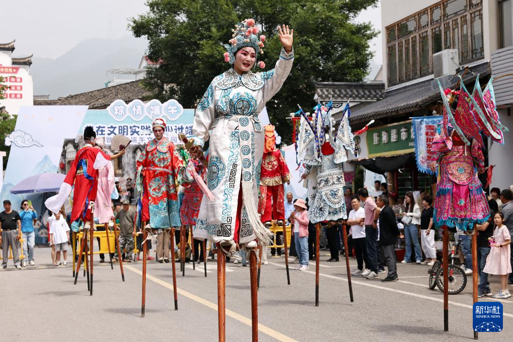 6月8日,在浙江省东阳市虎鹿镇蔡宅村,演员进行“高跷表演”。
