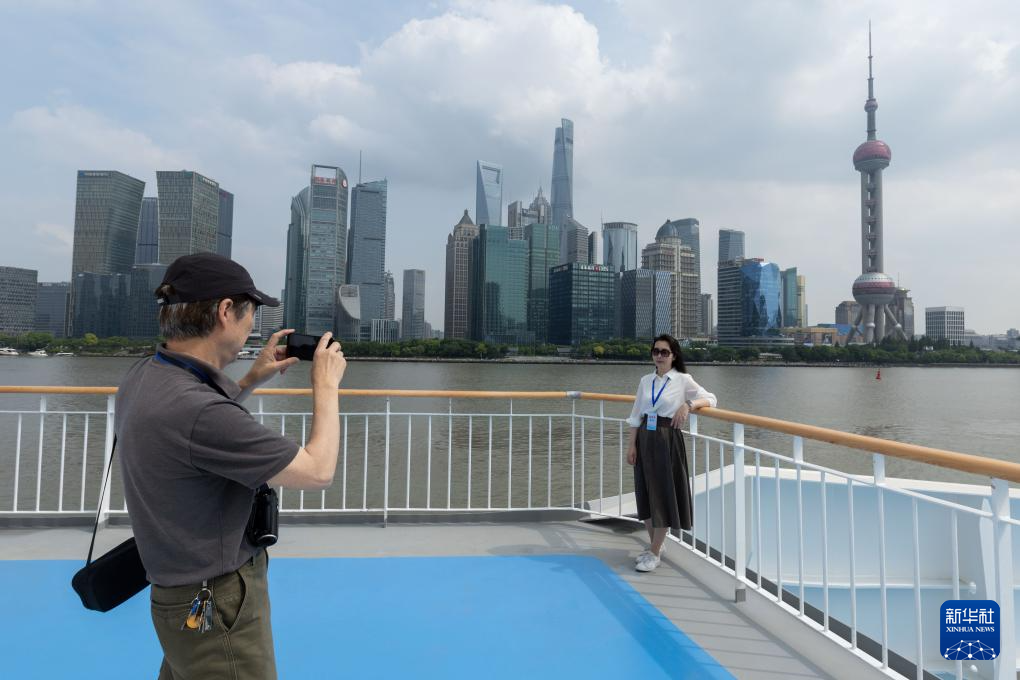 6月8日,人们在“鉴真号”轮上拍照留念。